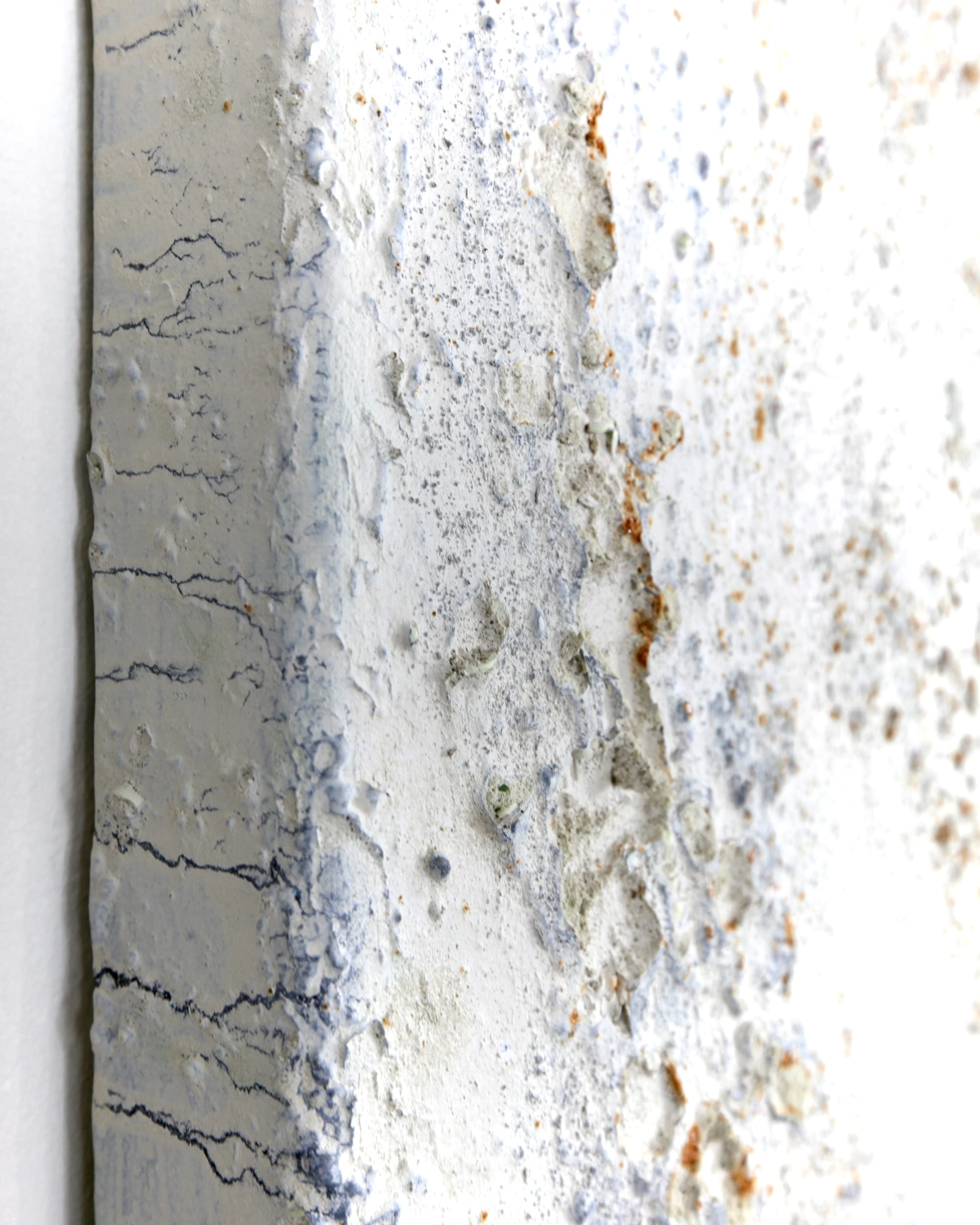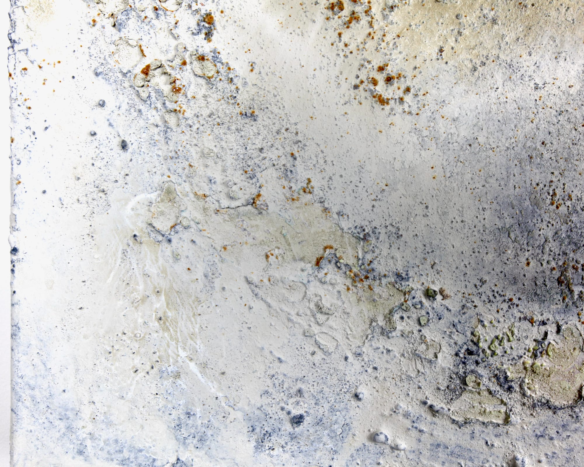 Farverne er kølige: grå, blå, beige toner med kun spredte antydninger af rust. Som tidlige morgener ved Vestkysten, hvor tågen sløver alt, og verden endnu ikke helt har taget form.