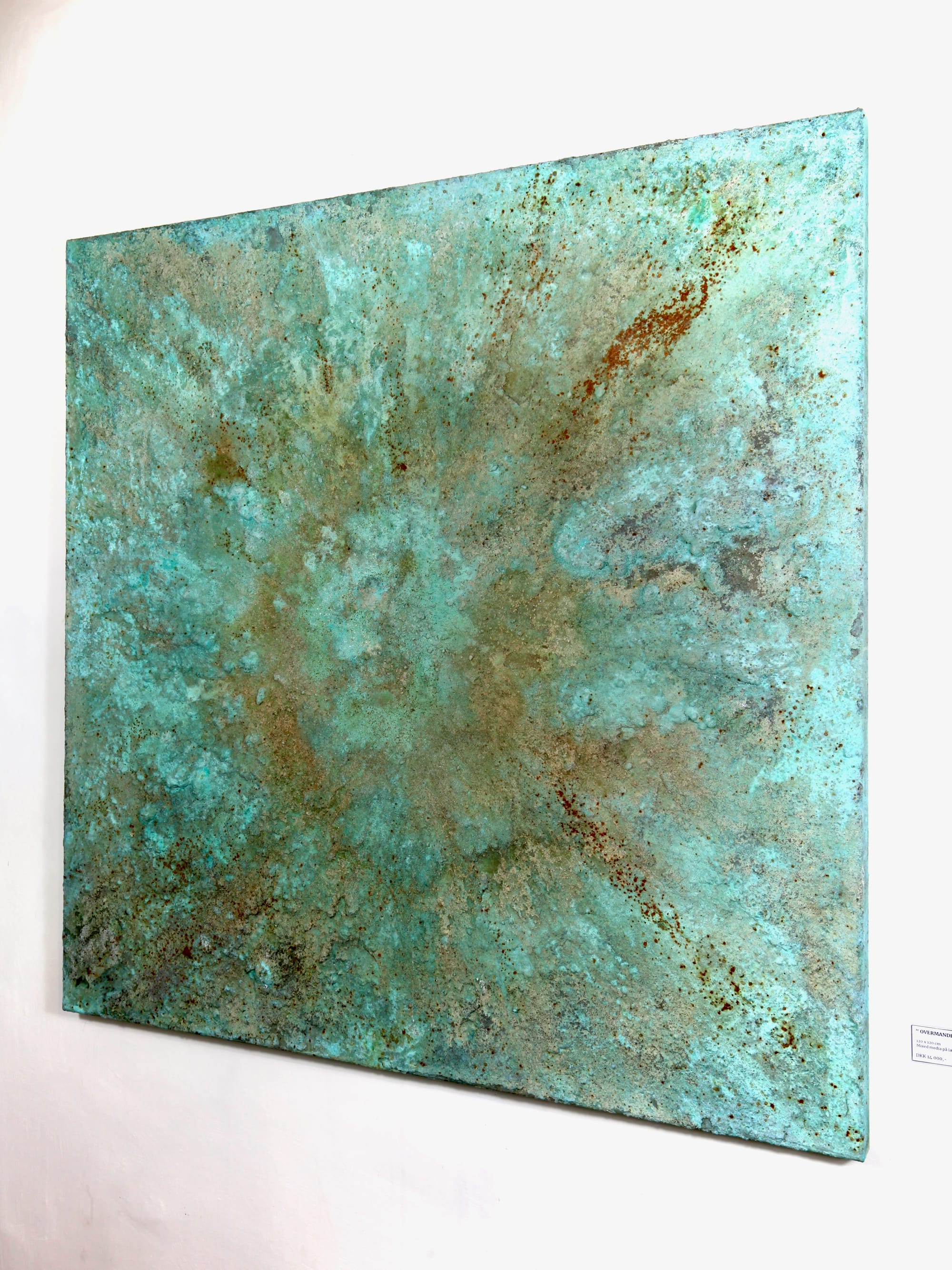 120 x 120 cm: mixed media på opspændt lærred.