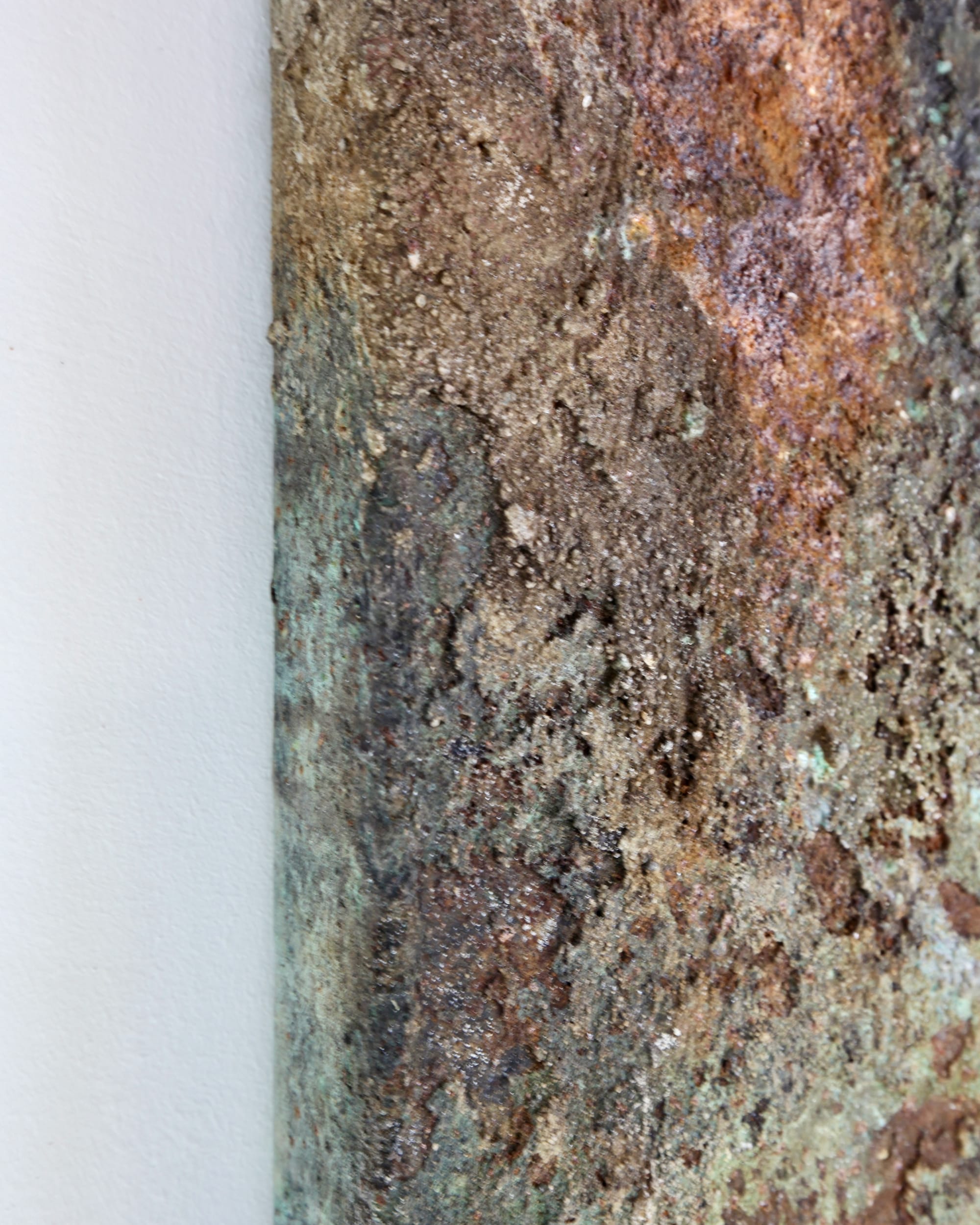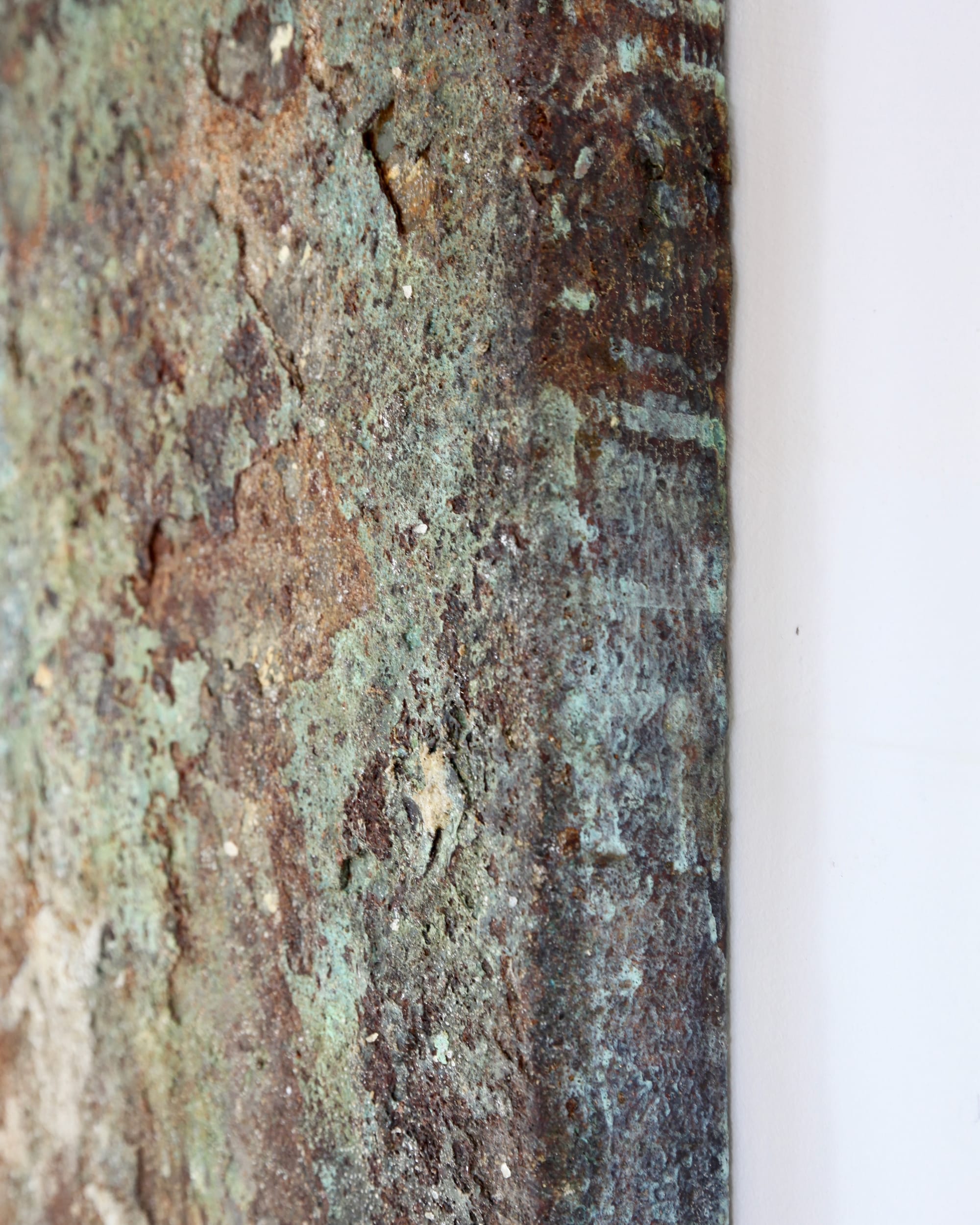 Værket er skabt ved at accelerere naturlige nedbrydningsprocesser gennem kemi og mekanisk bearbejdning, og bærer på den måde vidnesbyrd om tidens gang og materialers forgængelighed.