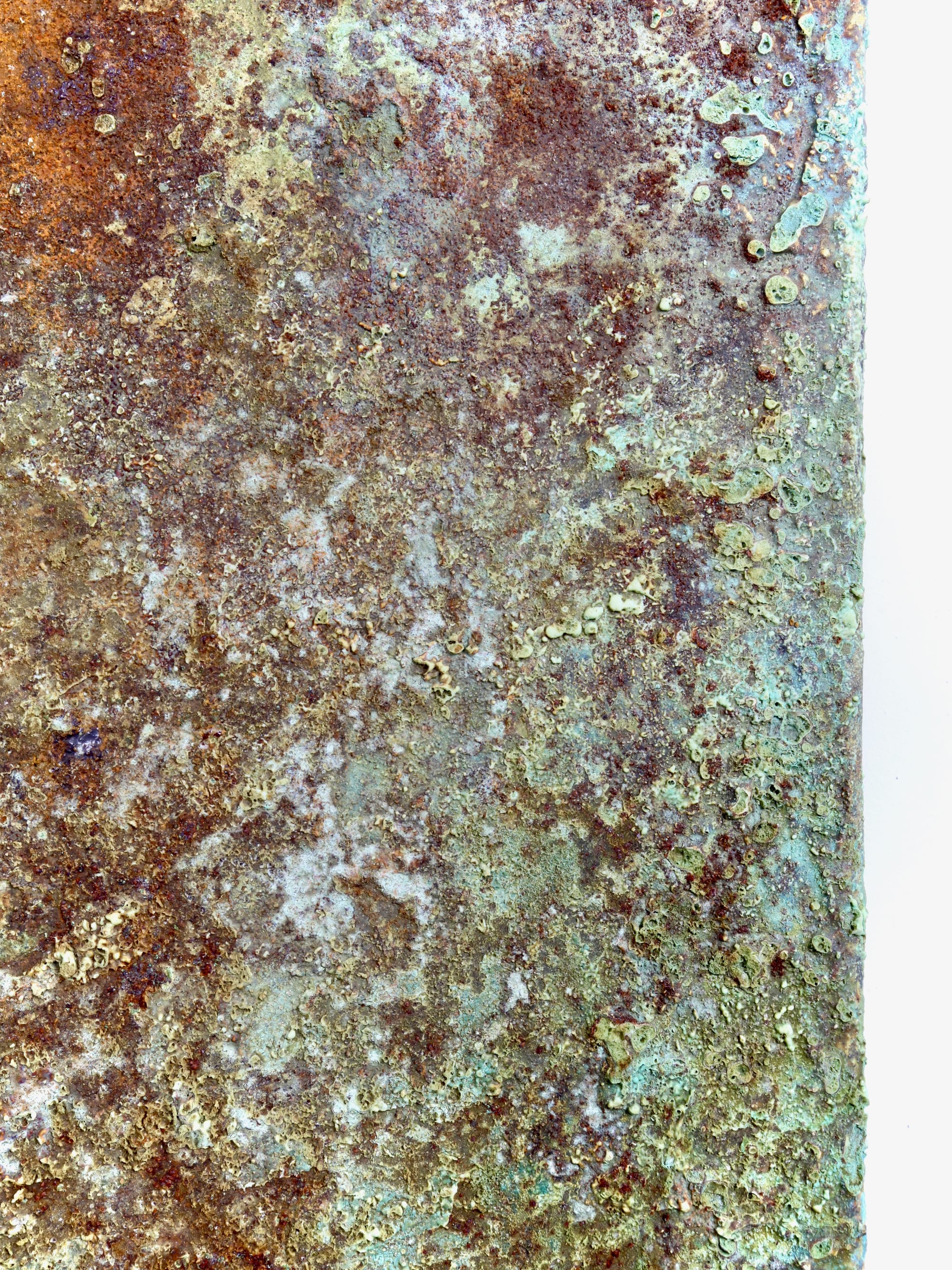 Som gammel matematisk student husker jeg hvordan differentialligninger både kan have universelle og partikulære løsninger. I kunsten findes der ingen universalløsning, så hér har jeg valgt at lege med en partikulær tilgang til det oxiderede, rustne og kobbergrønne farvespektrum.