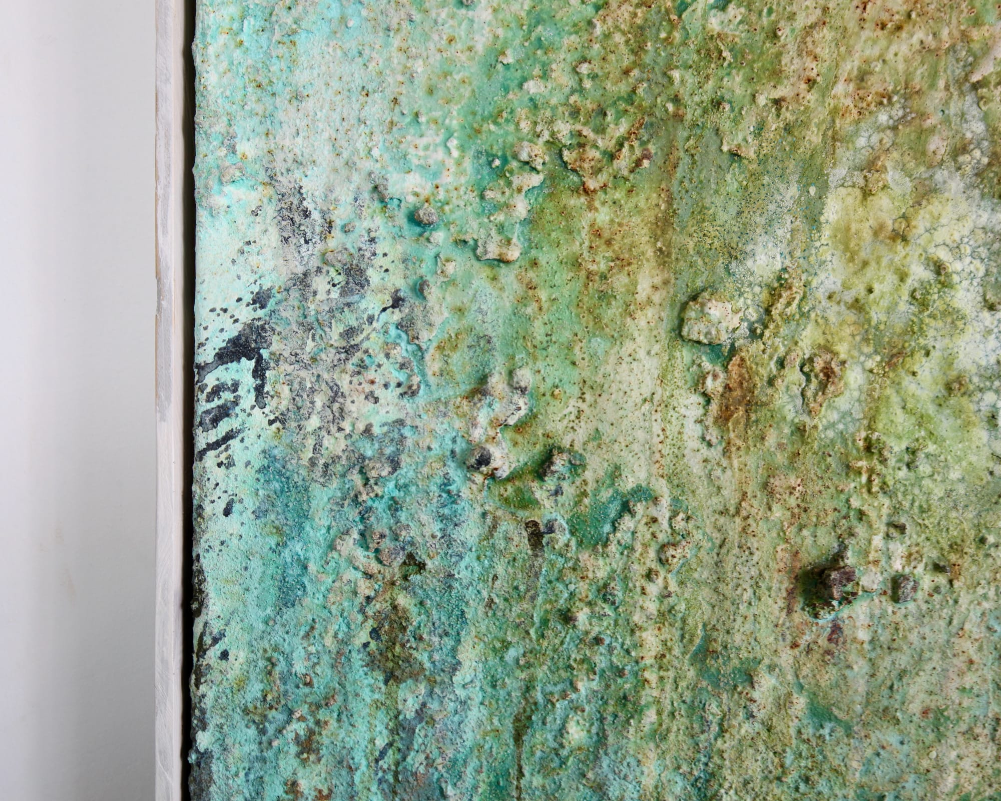Den oxiderede æstetik og patina-lignende kvalitet i maleriet understreger tidens gang og materialers forandring, og er i bund og grund et visuelt ekko af filosofien om at alt er i konstant flux.