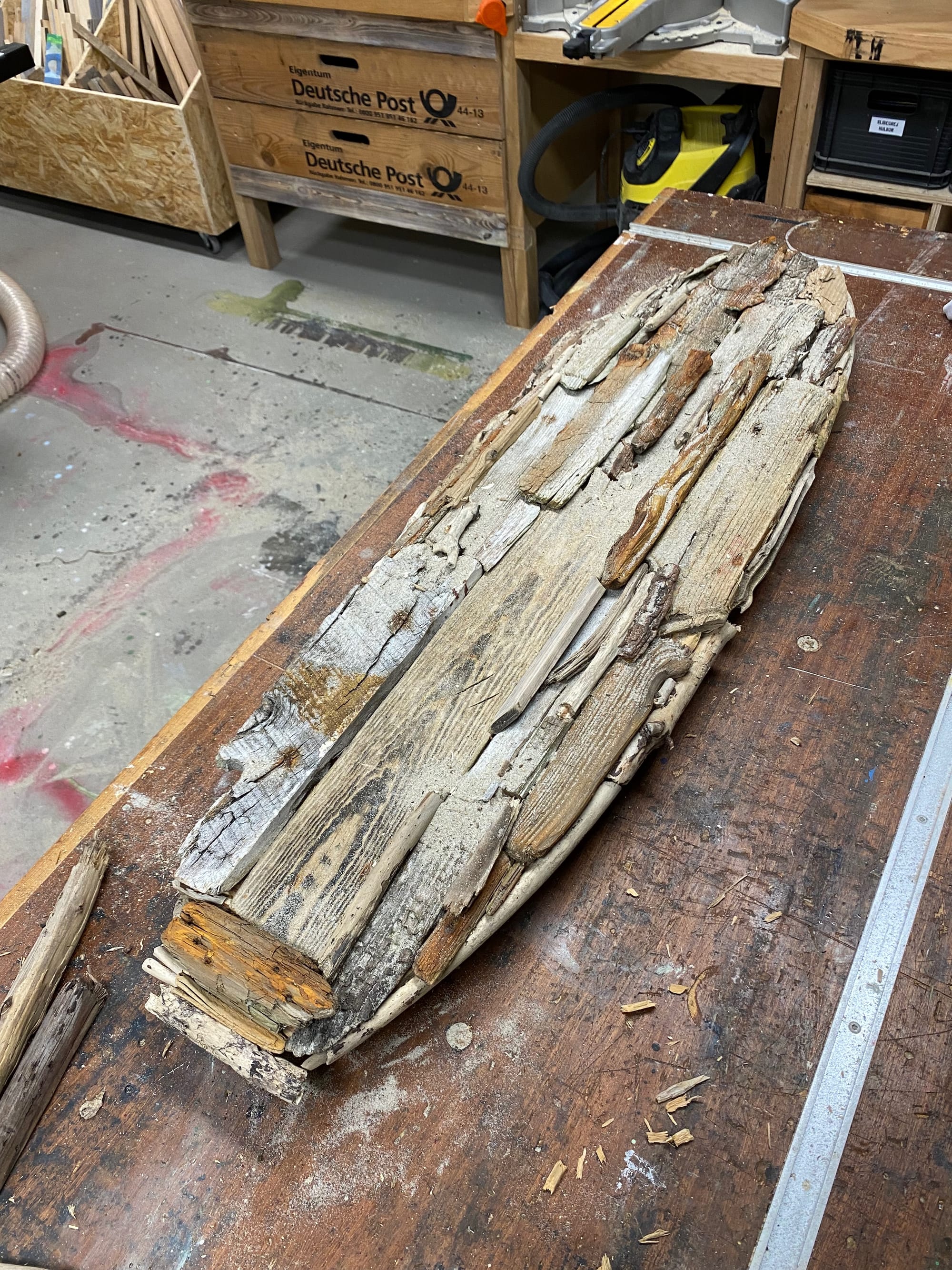 Fra arbejdet med at få linet de forskellige assemblager op, og få dem limet i værkstedet.