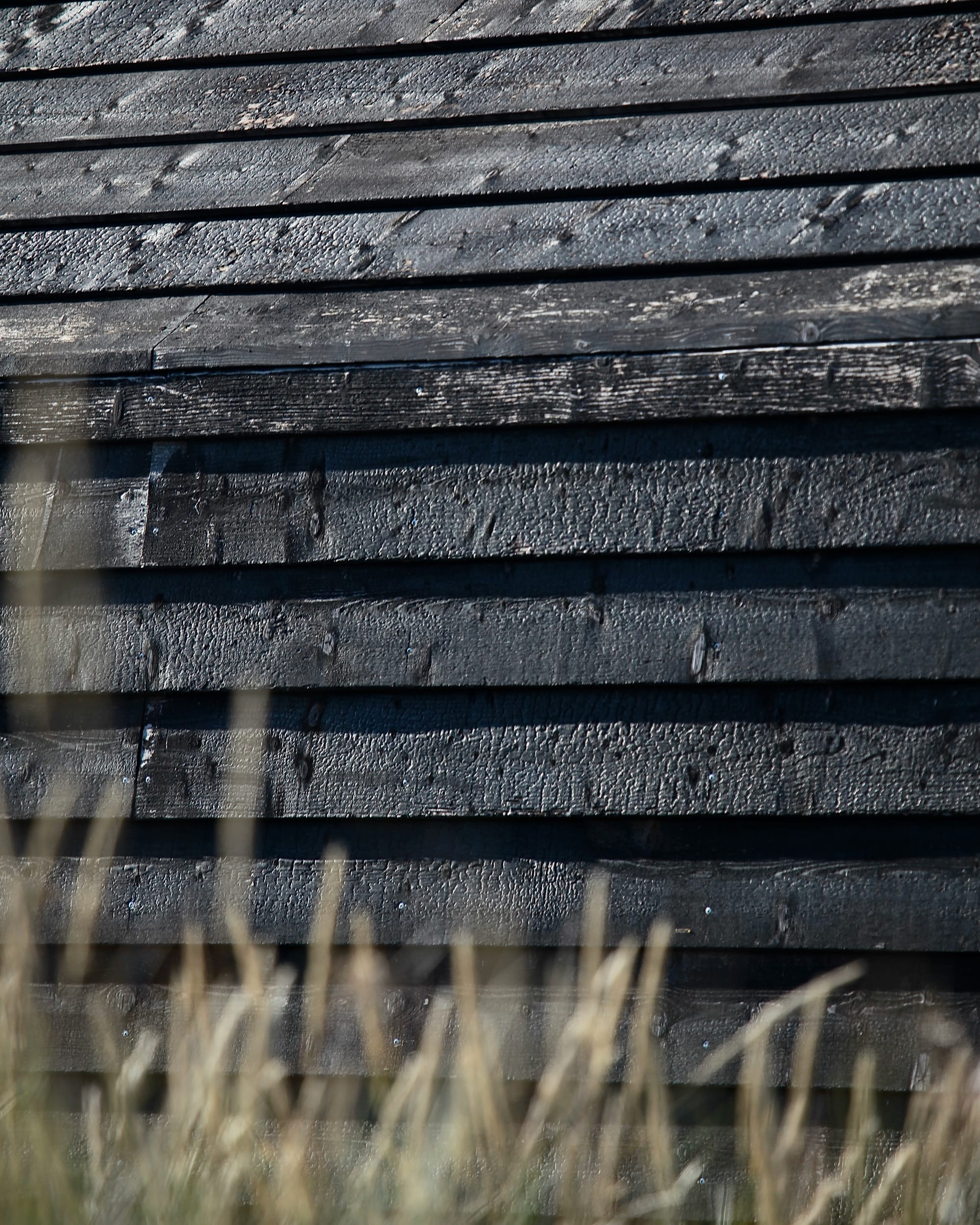 Brændingen skaber et naturligt beskyttelseslag, så bræderne holder i årtier uden yderligere, supplerende vedligehold. Samtidig får træet den karakteristiske, dybe sorte farve med ringe og struktur, der med årene vil gråne og patinere.
