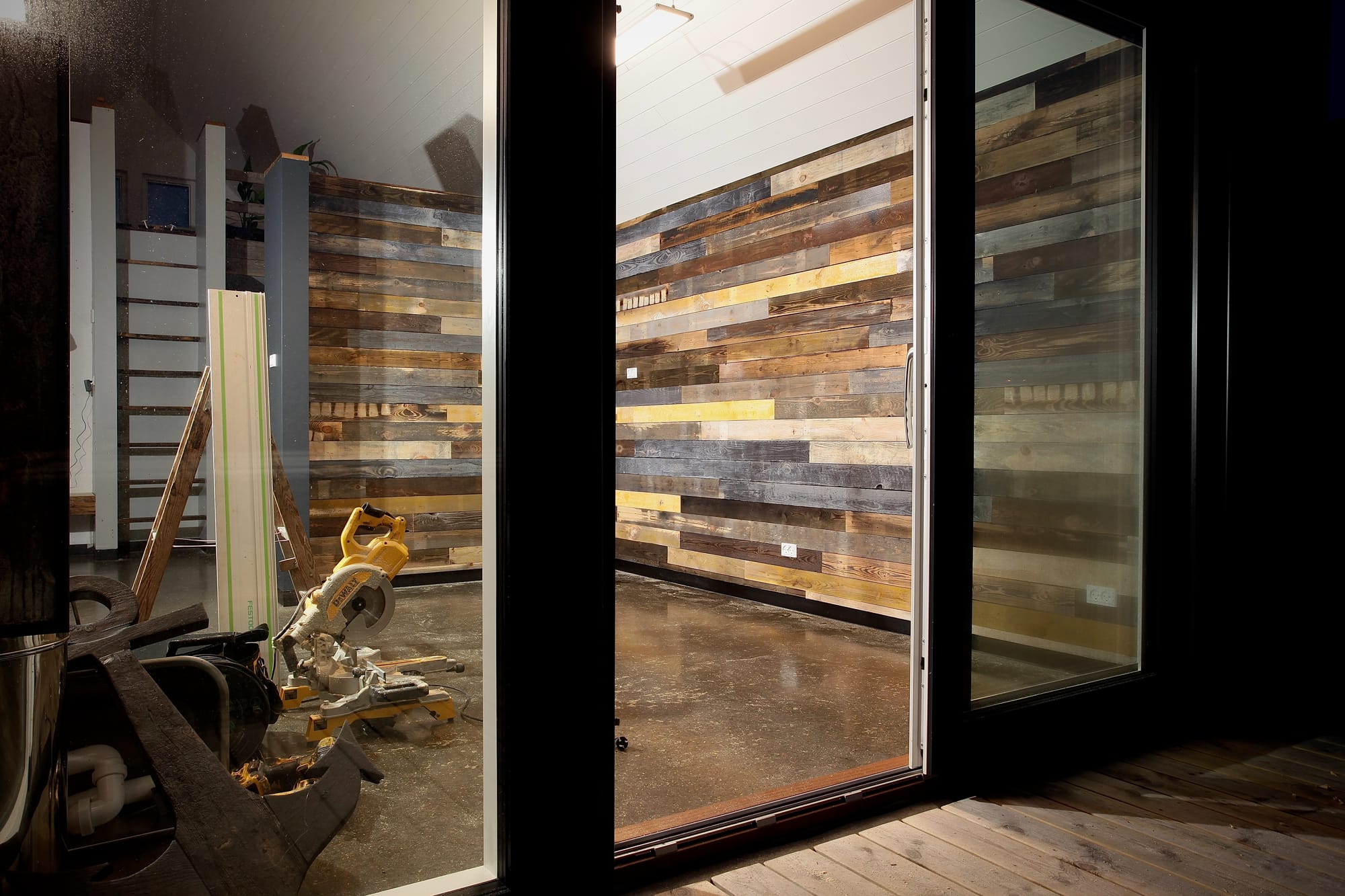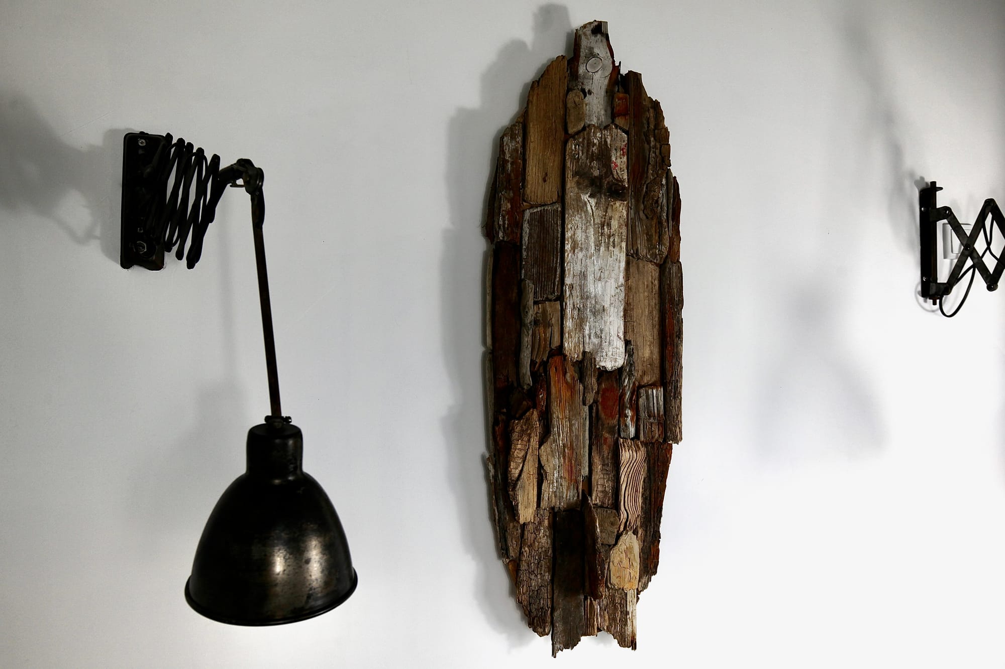 Fra december 2021, hvor jeg under (endnu) en coronanedlukning forskønnede atelieret med en featurevæg af genanvendt emballagetræ