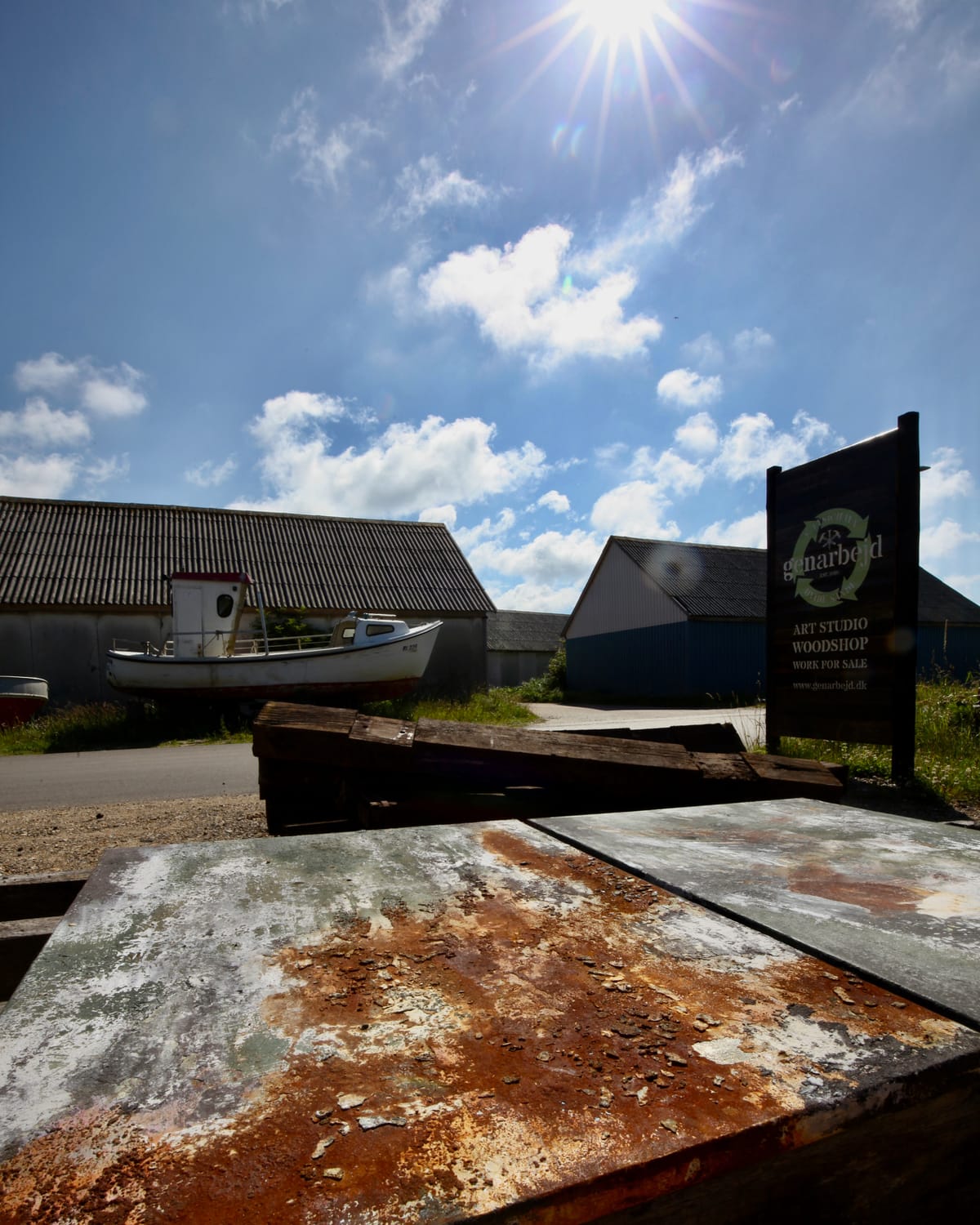 Fra træterrassen er der fri udsigt over den gamle jollehavn og til den smukke solnedgang mod vest. Et sted, hvor kreativitet og håndværk mødes. Hvor materialerne får nyt liv, og tingene godt må tage sin tid 🤍
