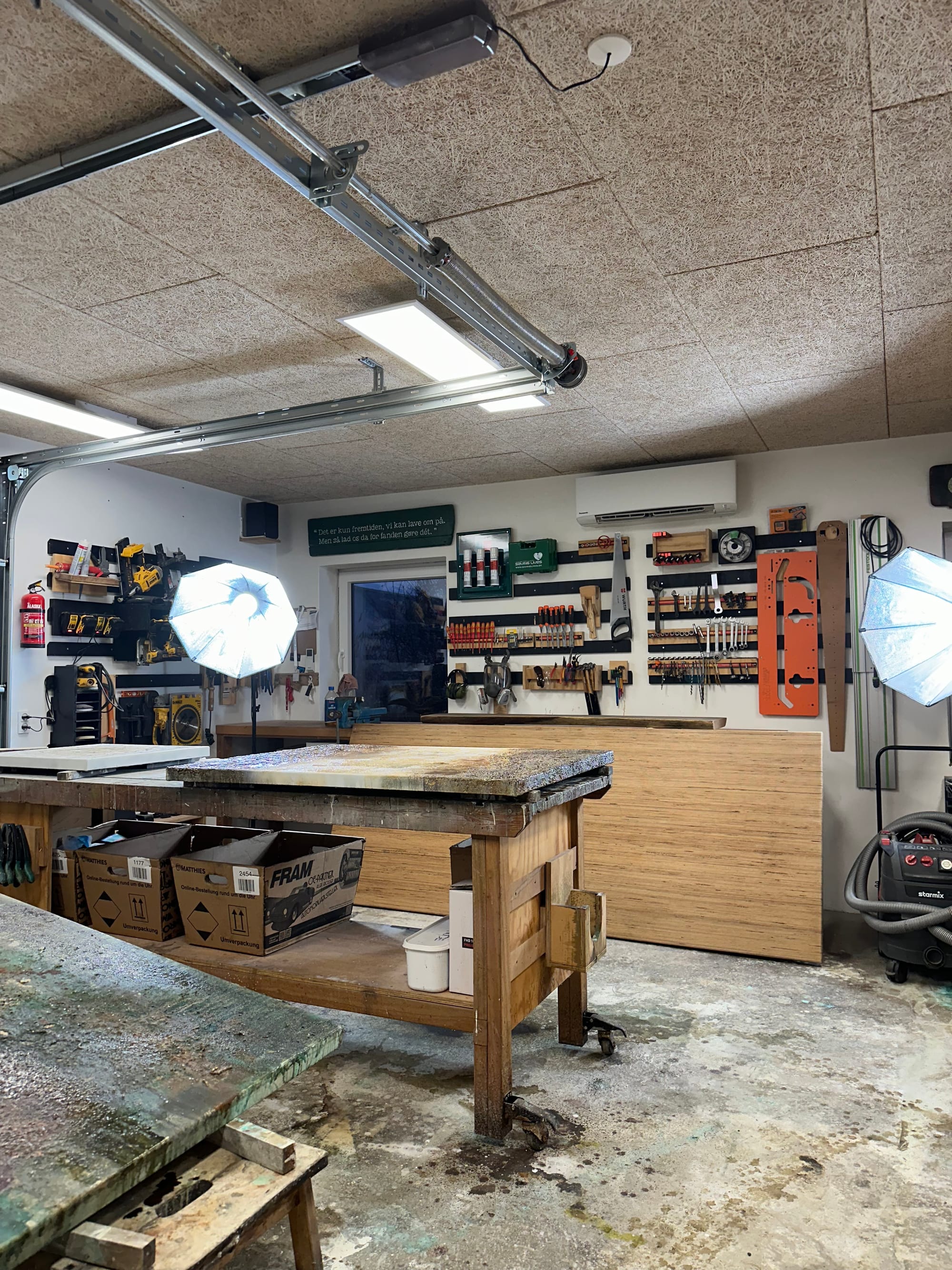 Mit studio er både konkret arbejdssted og alt muligt andet: lige dele legeplads, laboratorium og værksted. Jeg finder at energien fra besøgende snarere føder end lægger en dæmper på arbejdet.